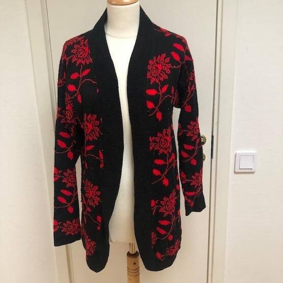 Vintage ladies black & red open cardigan size EU 38/40